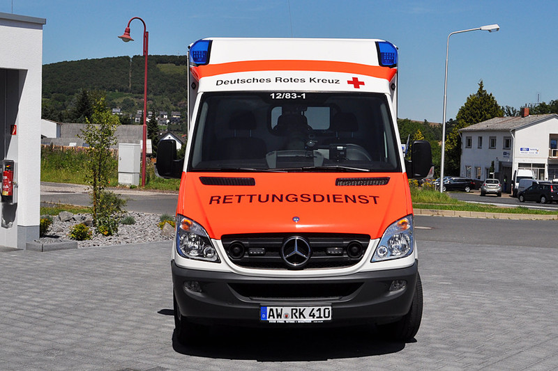 Sonstiges: | Rettungstransportwagen des DRK Kreisverband Ahrweiler. Das Fahrzeug ist an der Rettungswache Niederzissen stationiert. Es handelt sich bei dem Rettungsmittel um einen Rettungswagen Rheinland-Pfalz. Ziel eines landesweit einheitlichen Rettungswagen ist es, die Fahrzeuge flexibler einsetzen zu können und auch den Schulungsaufwand auf die verschiedenen Rettungswagen zu verringern. Durch die Rettungsdienstreform 2005 ist eine großflächigere Einsatzoption geschaffen worden, wodurch ebenfalls das Personal auf den örtlichen Rettungsmitteln variieren kann. Damit das Personal schnell und effektiv die benötigten Materialen findet, wurde 2008 der RTW Rheinland-Pfalz entwickelt. Hierdurch werden ebenfalls die Beschaffungskosten reduziert, da aufgrund der gleichen Bauart größere Auftragszahlen zustande kommen. Erarbeitet wurde das Konzept, welches zwei Varianten des Rheinland-Pfalz Rettungswagen beinhaltet, durch eine Arbeitsgemeinschaft der in den Rettungsdienst eingebundenen Verbänden. Bei beiden Varianten werden Mercedes-Benz Sprinter oder Volkswagen Crafter, die nahezu baugleich sind, als Fahrgestelle genutzt. Der Kofferaufbau stammt von System Strobel. Der Innenausbau unterscheidet sich in eine Variante mit Fronttragestuhl sowie eine ohne Tragestuhl. Das vorliegende Fahrzeug verfügt über keinen Tragestuhl. Variante 1: Die Rettungswagen ohne Tragestuhl verfügen über eine durchgezogenen Regaleinbau an der Frontseite, wobei an der Stelle des Tragestuhles ein Unterbauschrank mit Klapptüren für Reservematieral verbaut wurde. Weiterhin verfügt diese Variante sowohl auf der Fahrer- als auch auf der Beifahrerseite über einen Betreuersitz. Variante 2: Die Rettungswagen mit Tragestuhl ist dieser an der Frontseite des Aufbaus zwischen der Regalzeile verbaut. Aufgrund des Tragestuhls wurde unterem aus Gewichtsgründen auf einen zweiten Betreuersitz auf der Beifahrerseite verzichtet. Als Tragestuhl dienen wahlweise System Strobel Fronttragestühle oder Utila ALS 300-Tragestühle. Alle Varianten führen im Außenstaufach neben der üblichen Vakuummatratze und Schaufeltrage ebenfalls ein KED-System, ein Spineboard und einen Rettungsstuhl mit. Ebenfalls sind dort technische Gegenstände wie Klappspaten, Beil und Brecheisen verlastet. Im Patientenraum ist beifahrerseitig im Heck eine Platte zur die Sicherung des Patientengepäcks verbaut. Fahrerseitig ist über dem Sauerstoffschrank Hygienematerial für die Wiederherstellung der Einsatzbereitschaft verlastet. Im vorderen Bereich ist fahrerseitig noch ein Schubladenturm verbaut, in dem das benötigte Equipment von Beatmung und Intubation verräumt ist. Die Schrankeinheit an der Front beinhaltet die diagnostischen Gerätschaften, Medikamente, Perfusor mit Zubehör, Materialien zur Wundversorgung und zum Infektionsschutz, Dokumentation und Hygienematerial. Im Alkoven-Staufach befindet sich weiteres Immobilisationsschienen und Stifnecks. Das Fahrerhaus ist bis auf wenige Ausnahmen einheitlich mit Teledux 9 – Funkgeräten, Navigationssystem und weiterem üblichem Material bestückt. |